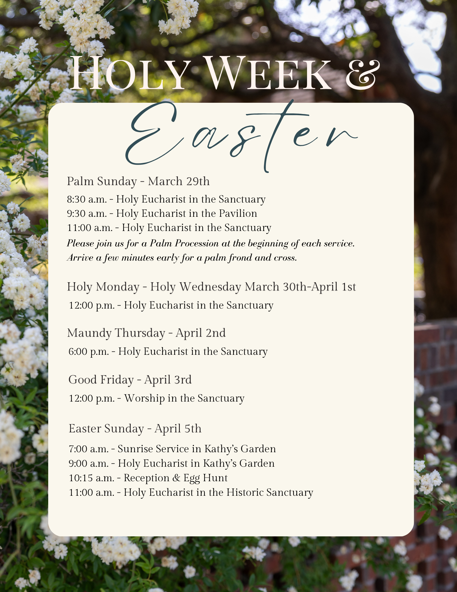 9:30 a.m. - Outdoor Worship in the Pavilion (Parish Hall in January & February)